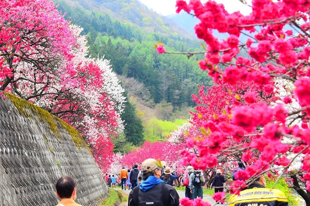 本日のマスツーリングはチームFRの皆さんと走ります。目的地は日本一の桃源郷と言われるほど! 花桃が山間の里を埋め尽くす光景は一見の価値ありと言わざるを得ません。